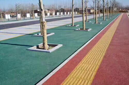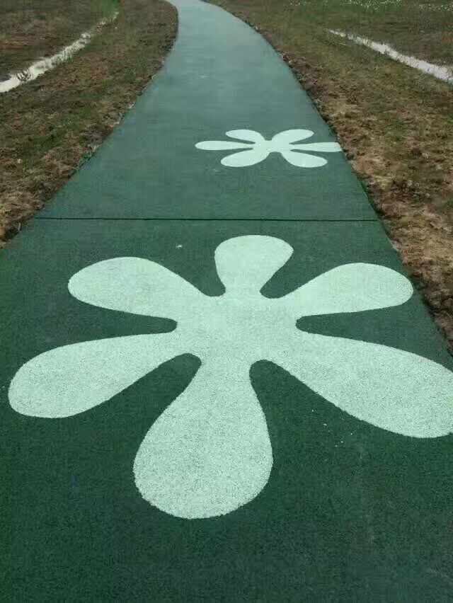 3涂布綠道樹脂,并拋撒顆粒。樹脂用量控制在每平方1.5公斤。骨料顆粒用量控制在每平方5公斤