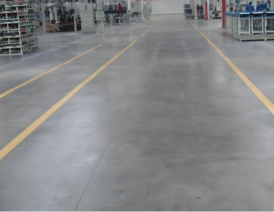 在機(jī)械加工、汽車制造等工業(yè)制造車間,地面需要承受叉車頻繁的碾壓、重型設(shè)備的長(zhǎng)期重壓,以及金屬零件掉落的沖擊。這類場(chǎng)所使用的金剛砂耐磨地坪,對(duì)耐磨性和抗壓性要求極高。骨料顆粒通常較大且含量更高,以此增強(qiáng)地面硬度,莫氏硬度一般達(dá)到 8 級(jí)左右,能有效抵御尖銳金屬零件劃傷,長(zhǎng)期使用也不易出現(xiàn)磨損、起砂現(xiàn)象。同時(shí)為滿足工業(yè)生產(chǎn)防靜電的需求,部分車間還會(huì)添加導(dǎo)電纖維等特殊材料,打造防靜電金剛砂耐磨地坪,防止靜電對(duì)精密儀器和電子元件造成損害 。