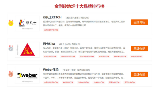 西卡 / Sika:來自瑞士,擁有悠久歷史。其金剛砂耐磨骨料產(chǎn)品質(zhì)量把控嚴(yán)格,耐磨性、抗壓性與耐腐蝕性出色,廣泛應(yīng)用于工業(yè)廠房、物流倉庫等大型工程,在全球市場知名度和占有率極高。