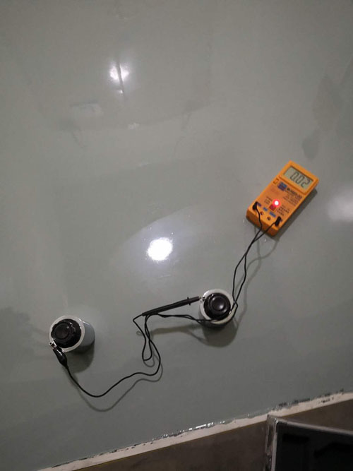 依照青峰藥業(yè)圖紙要求制作不發(fā)火、耐腐蝕、導(dǎo)靜電地面和普通環(huán)氧地面,環(huán)氧樹(shù)脂層由底涂、中涂和面涂等不少于三道涂層涂裝而成:厚度應(yīng)達(dá)到4mm,環(huán)氧涂膜層導(dǎo)電性能指標(biāo)應(yīng)符合以下要求:5.0×106Ω.cm<電阻率<1.0×106Ω.cm;表面電阻和系統(tǒng)電阻值要求:5×104<電阻<1.0×1064Ω;外觀性能要求:1、沒(méi)有空鼓、分層、龜裂現(xiàn)象;2、無(wú)明顯凹凸不平;3、無(wú)明顯劃痕;4、無(wú)明顯色差;地面清潔,將地面上的油漆、粘合劑等殘余物清理干凈。