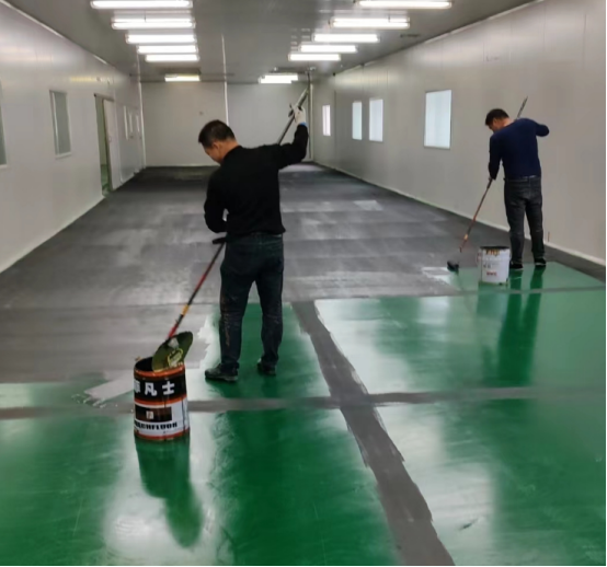 ③防靜電底漆:采用滲透性及附著力特強(qiáng)防靜電環(huán)氧底漆滾涂一道,增強(qiáng)表面附著力;